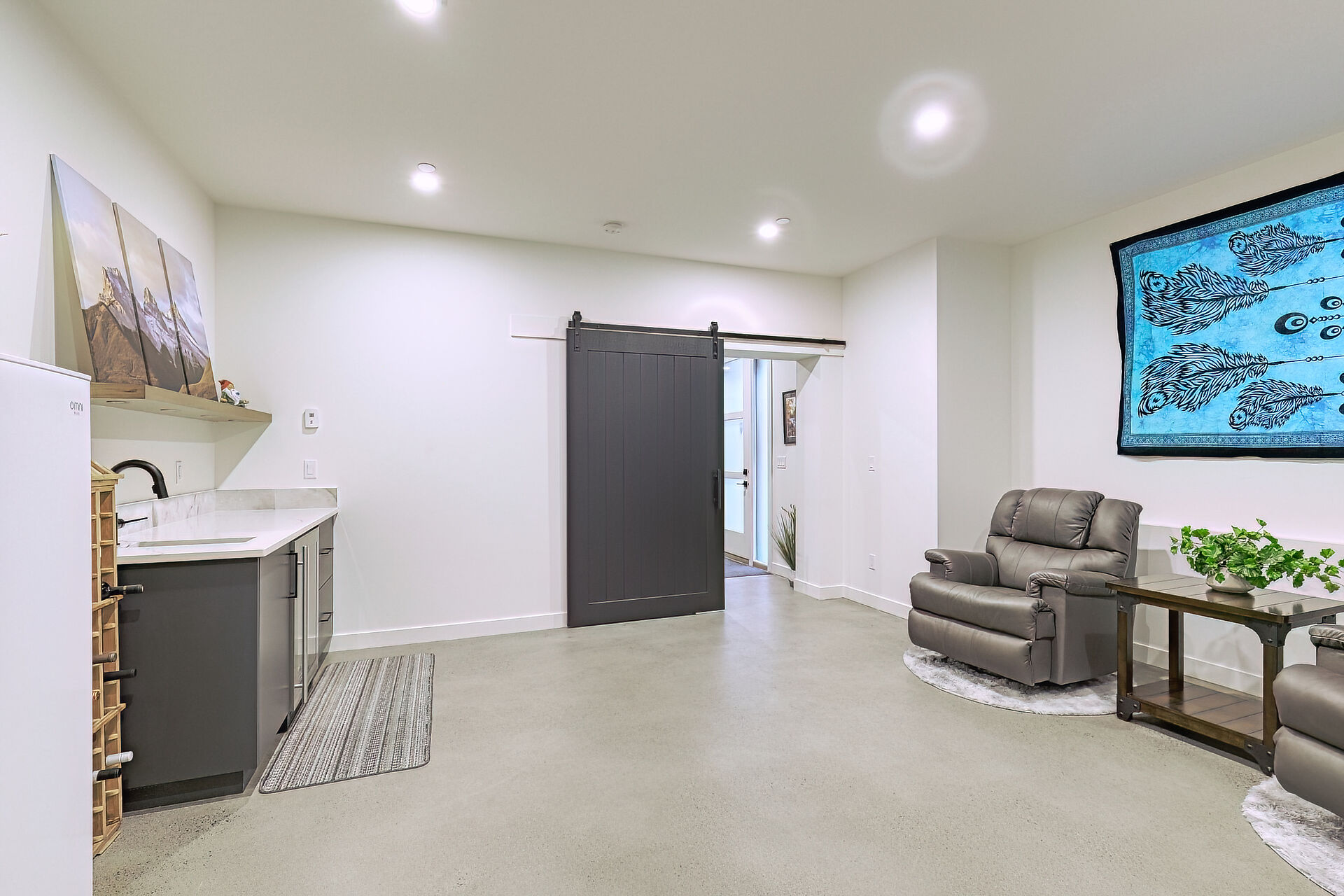 Gleaming hardwood floors and wet bar